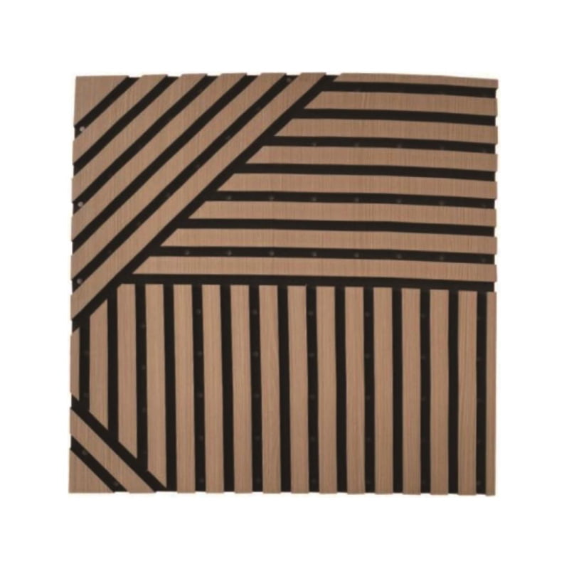 The sound absorption function of polyester fiber is fully utilized, and WPC wood plastic board is used for hollow carving. WPC carving is nailed and fixed on the polyester fiber board, and the hollow carving can retain the beautiful carving pattern without affecting the sound absorption function of the polyester fiber board. The wood plastic board is decorated with PVC film, which is beautiful and practical, and can form a good three-dimensional beauty through color comparison with polyester fiber. The carving style is aesthetically diverse and can be customized according to different customer preferences, showcasing nobility! Polyester-carved sound-absorbing board combines two materials with different functions to achieve a perfect combination of sound absorption and decoration.